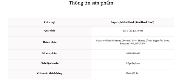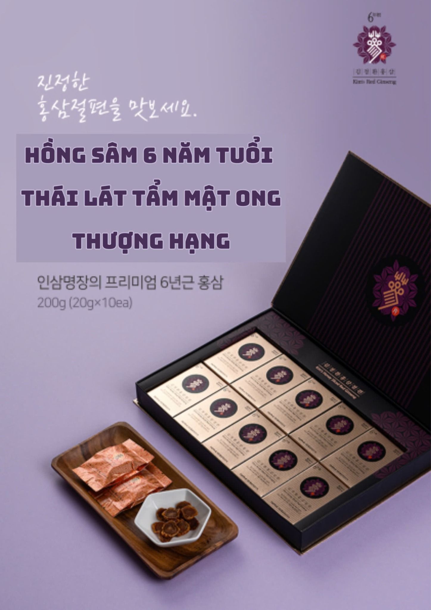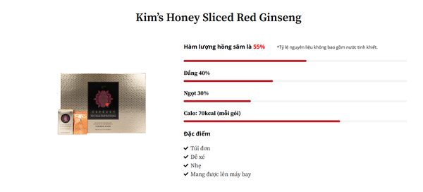 Hồng Sâm 6 Năm Tuổi Thái Lát Thượng hạng ( 10 gói x 20gr ) (Kim’s Honey Sliced Red Ginseng)